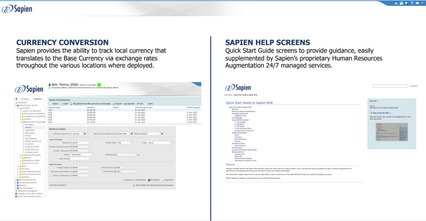 At-a-glance summary and detail reports for corporate team management, included in Sapien standard build. Customized reports, with security access parameters, for individual countries, offices, departments, etc., in English or country-specific languages.